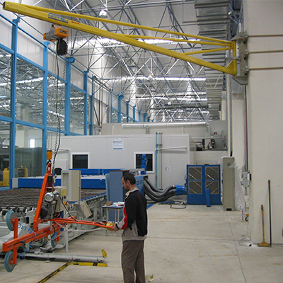 Fabrikada bulunan kolonlara duvar bağlantı aparatları yardımıyla monte edilebilen pergel vinçlerin Pergel kol boyu ihityaca göre ayarlanabilmektedir.