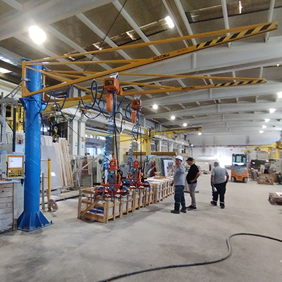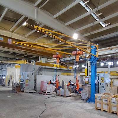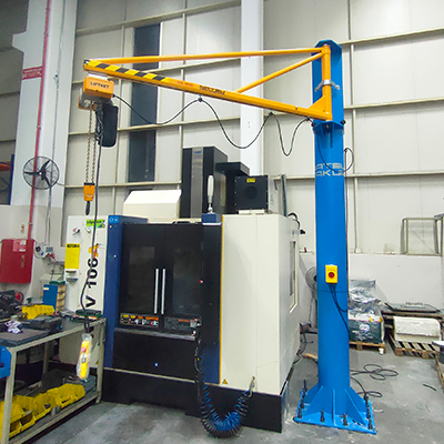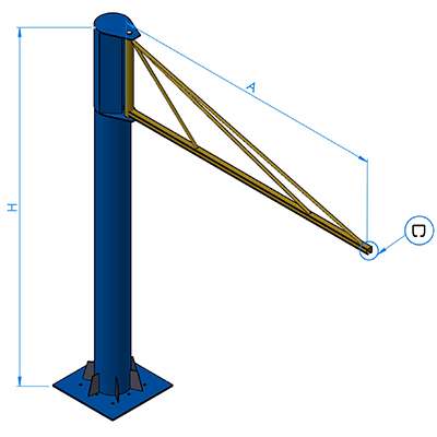 Fabrika zeminine temel ankraj malzemeleri ile monte edilen pergel vinçlerin Pergel kaldırma kapasitesi- direk yüksekliği ile pergel kol boyu müşteri ihtiyacına göre ayarlanabilmektedir
