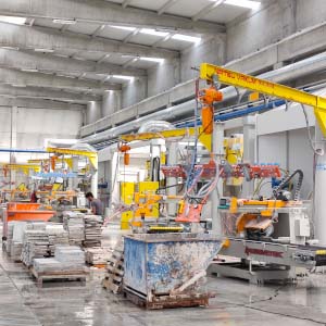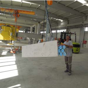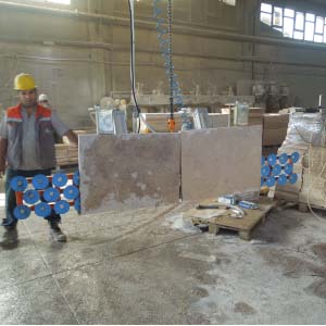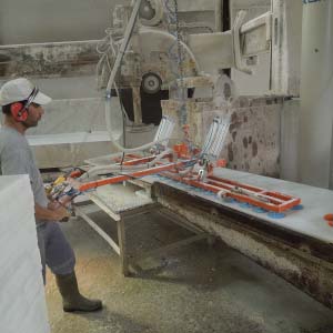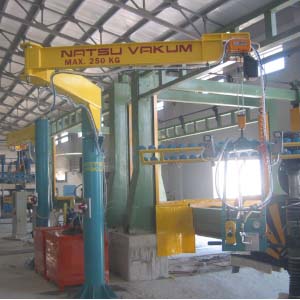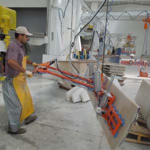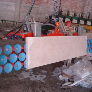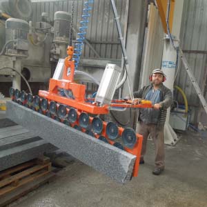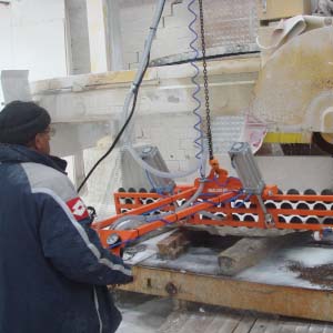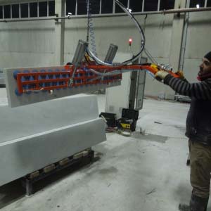 Blok kesme makinasında kesilen mermer, granit ve traverten striplerin vakumla alınarak baş kesme, yarma veya palete dizilmesi işlemini yapar. Vakum pompalı veya vakum ejektörlü olup, döndürme sistemi pnömatiktir. Pergel vinçte çalışır. Vakum emiş vantuzları optimum değerlere ürünün boyut ve yapısına göre seçilir. Kırık ve çatlak taşların bile vakumlanarak alınmasına imkan verir. Çevirme sistemi pnömatik olup standart aksesuarlara dahildir.