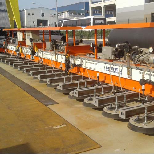 Vakumlu Sac Plaka Kaldırma ve Taşıma sistemlerinde Natsu Vakum’un ürün çeşitliliği oldukça fazladır.Büyük ebatlı ve tonajlı -22 ton- sac levhaların kumlama hattına yüklenmesi, hat çıkışında istiflenmesi, paslanmaz plakaların fırçalama ve taşlama hatlarına vakumlu yüklenmesi, desenli sac üretim hatlarına vakumlu yükleme yapılması, çatı panel üretim hatlarına panellerin otomatik istiflenmesi ve çevrilmesi, lazer-CNC makinelerine sac plakaların gezer vinç ve- veya pergel vinç yardımıyla vakumlu yükleme yapılması gibi bir çok seçenek standart ürün grubumuzda bulunmaktadır.