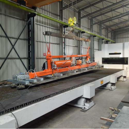 Lazer kesim tezgahına otomatik vakumlu veya manüel vakumlu yükleme cihazlarımız standart  üretimimiz olup lazer kesim tezgahına vakumlu cihazlar ile pergel vinç sistemlerimiz birlikte verilebilmektedir.