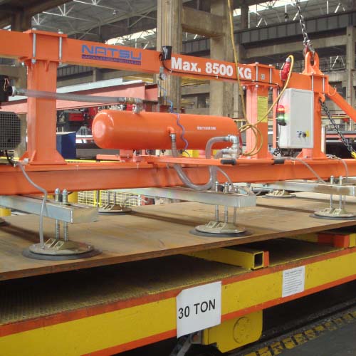 22 tona kadar farklı ebat ve ağırlıktaki sac plaka-levhalar için farklı seçeneklerimiz mevcuttur.Vakumlu Cihazlarımızın vakum vantuzları enine ve boyuna her iki yönde ayarlanabilir özelliktedir.Plaka üzerinde oluşabilecek dalgalanmalardan etkilenmemek için yaylı ve yükseklik kompanzatörlü olarak vakum vantuzu seçimi yapılmaktadır.Sesli-ışıklı uyarı sistemimizin yanında gözle kontrolü sağlayan vakum ölçer, vakum emniyet deposu, tek yönlü valf, motor aşırı yükleme anahtarı, manüel kilitli vakum kumandası, tehlike sınır uyarı indikatörü, enerji kesilmesinde ve vakum kayıplarında devreye giren sesli-ışıklı uyarı sistemi Natsu Vakumlu Taşıma Sisteminin imalatını yaptığı  vakumlu sac kaldırma cihazlarında standart olarak bulunur.