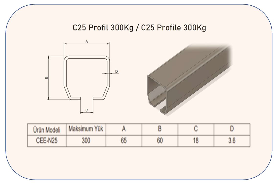 Ürün Kodu: C25 Ray Profiller / C25 Track Profiles