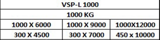 Farklı ağırlık gruplarında ,farklı uzunluklardaki dar sac levhaların kanca altı taşınması için üretilen VSP-L kaldırılacak ürün özelliklerine göre makine uzunluğunda ve kullanılan vakum vantuzlarında değişikliğe gidilerek modifiye edilebir.
