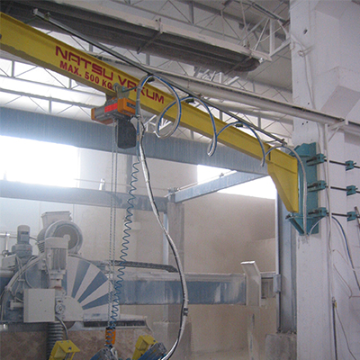 Fabrikada bulunan kolonlara veya makine ayaklarına duvar bağlantı aparatları ile monte edilen pergel vinçlerdir.